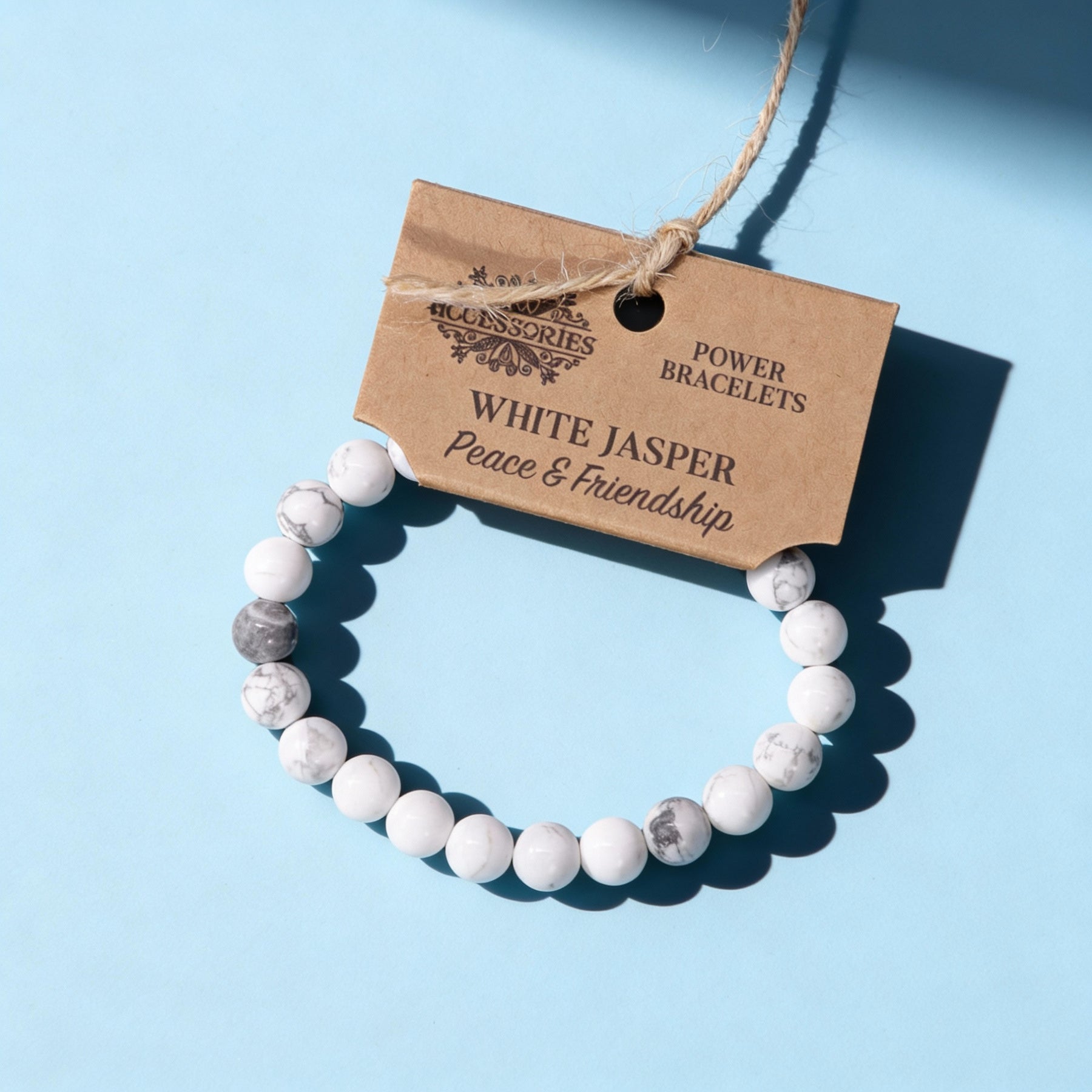 • A 'White Jasper' Gemstone bracelet - This beautiful power bracelet with White Jasper beads will look lovely with any outfit. And not only that but White Jasper has its own individual benefits which are said to help balance emotions and enhances the ability to be able to relax and be calm.