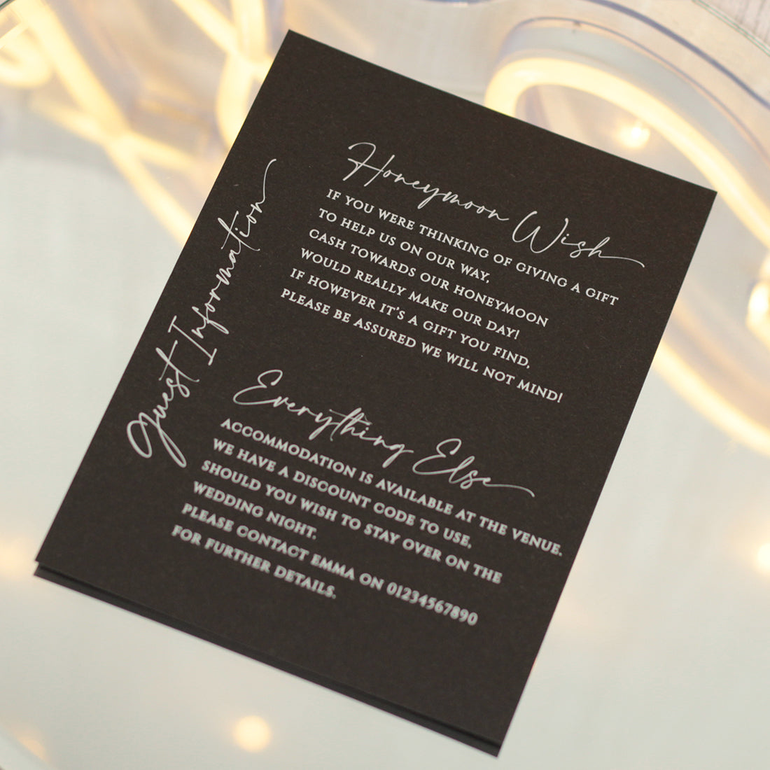 The bottom of the card is then printed with your wedding details - please let us know these in the personalisation box.