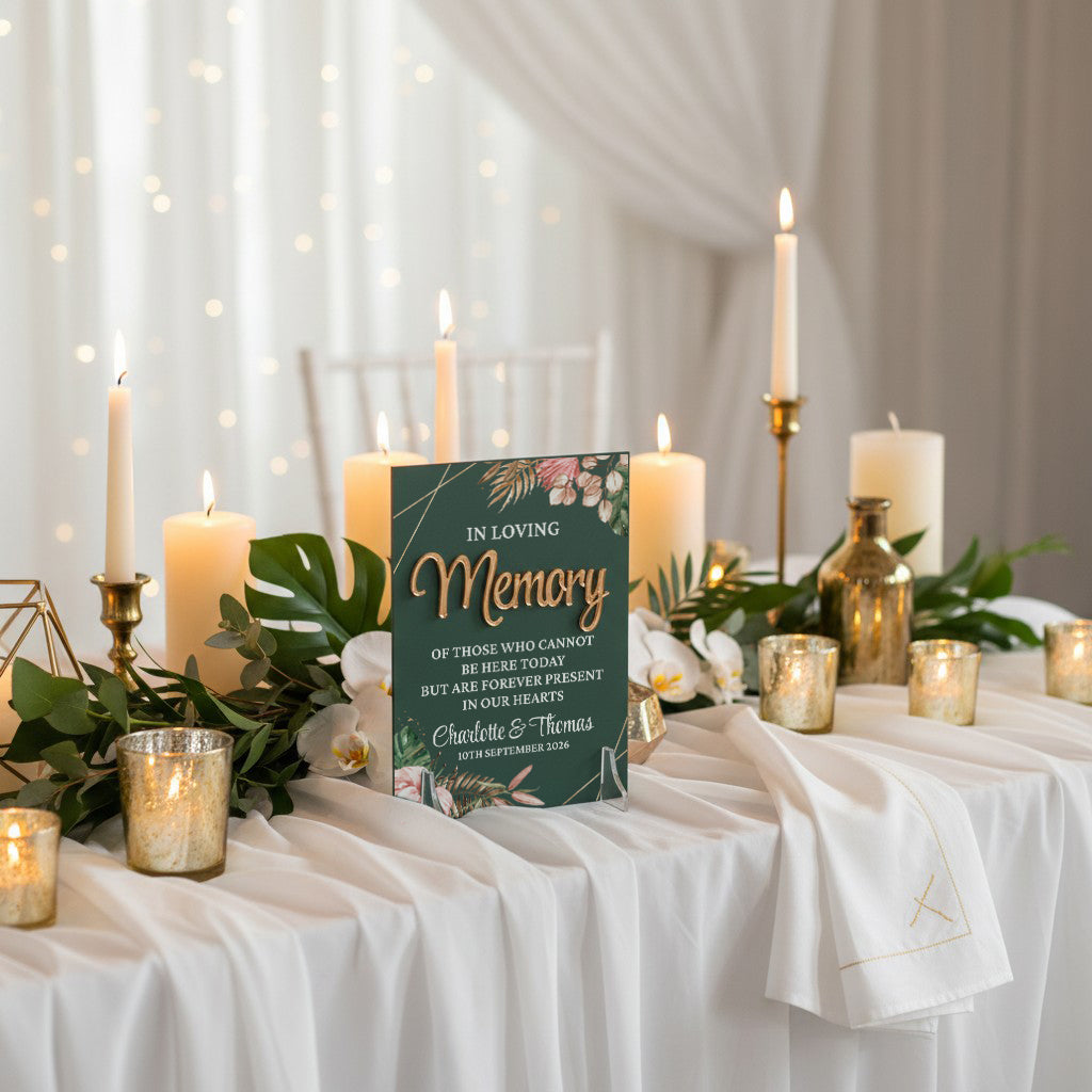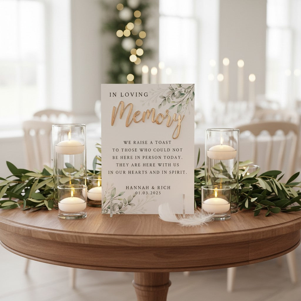 A collection of items to display on your memorial table to remember loved ones who aren't able to be a part of your day.