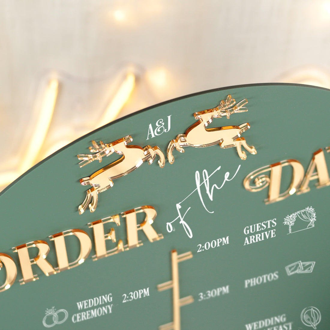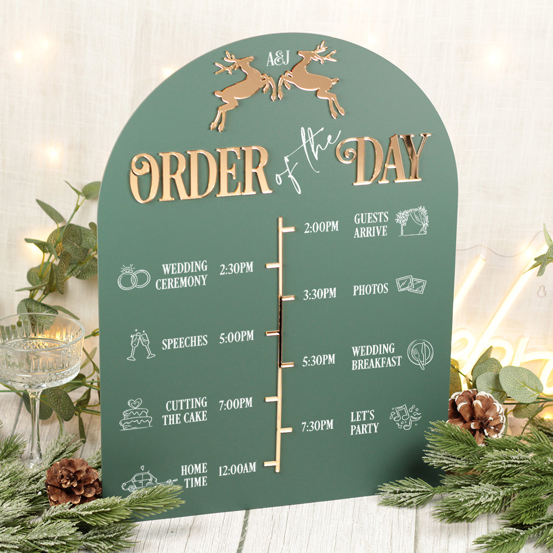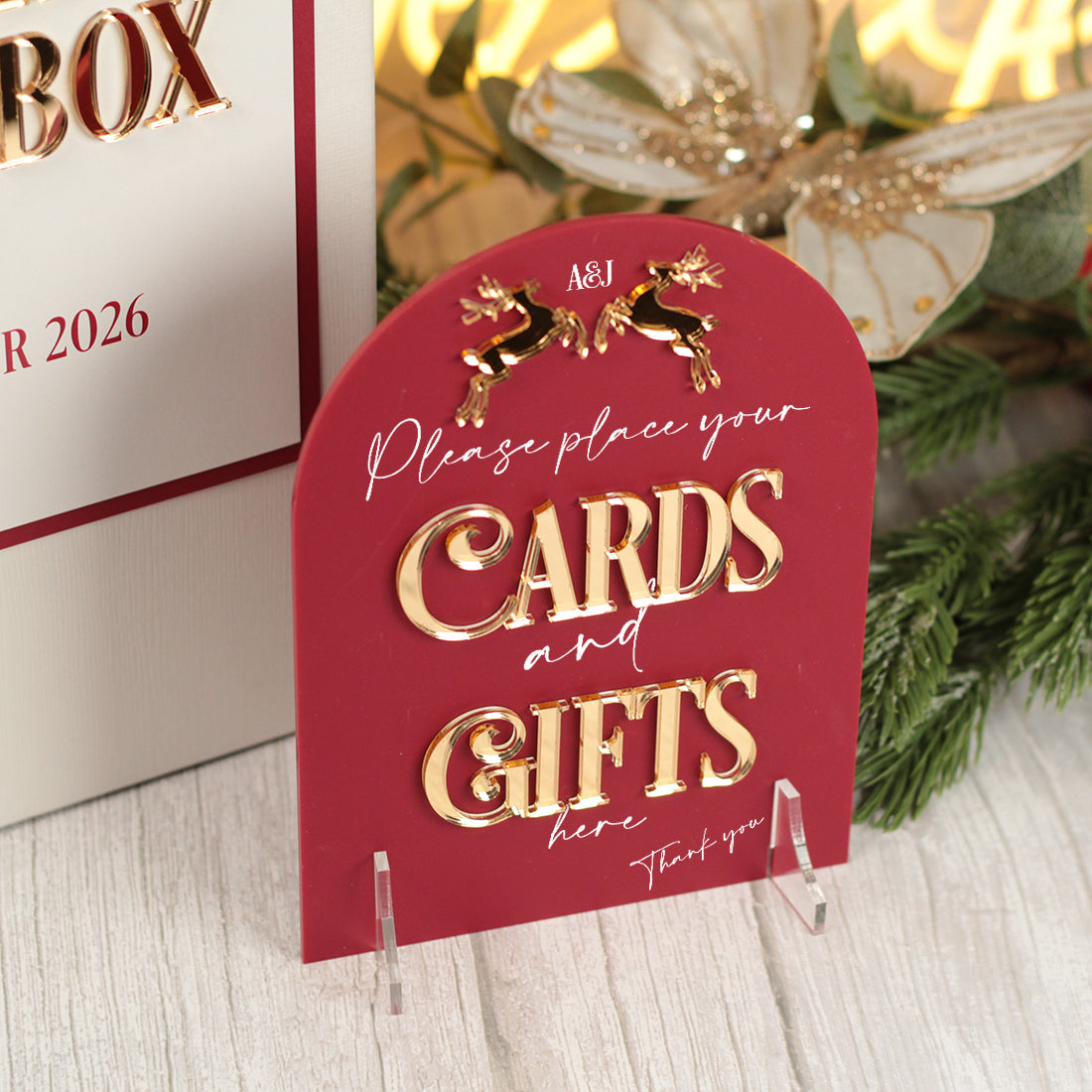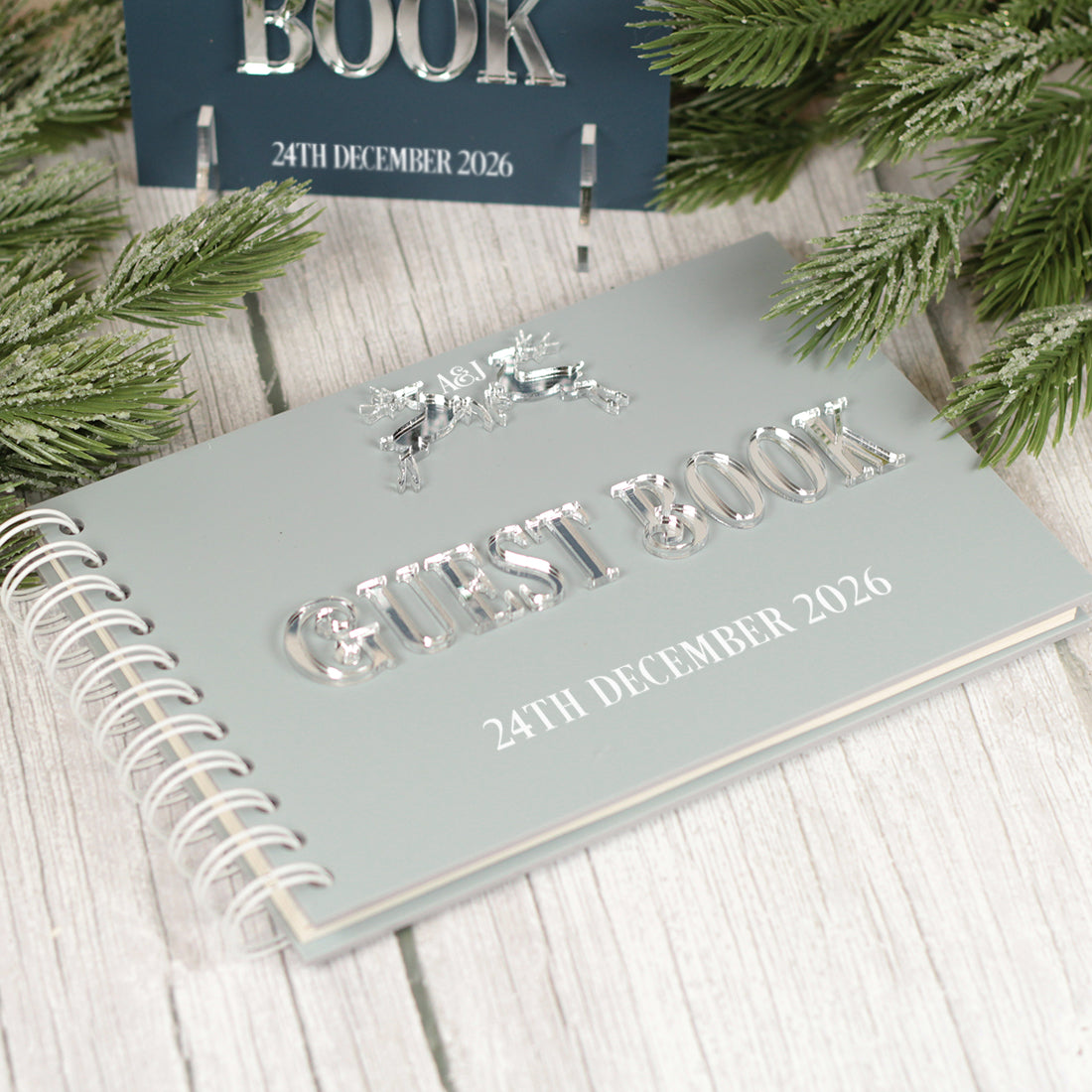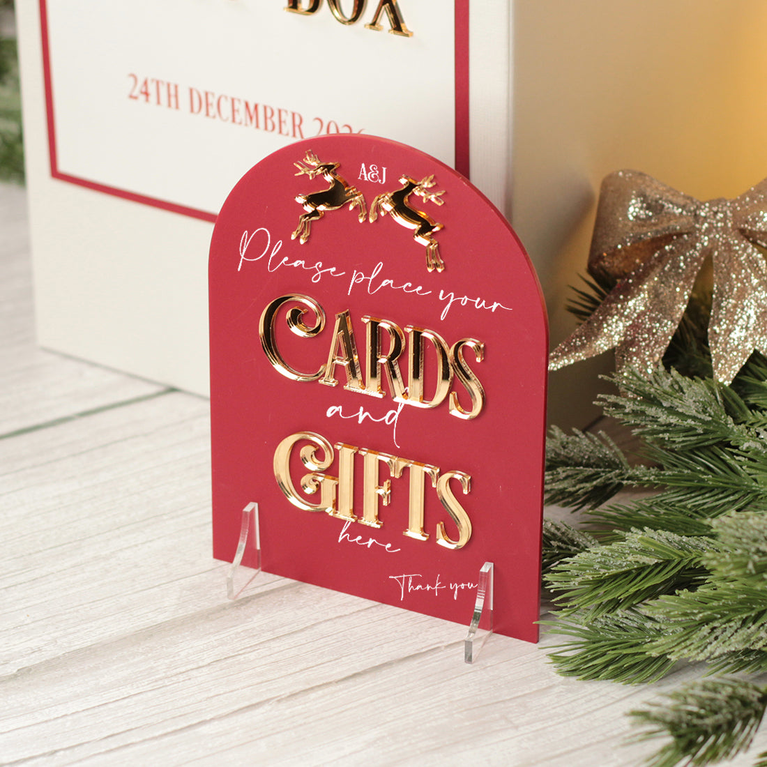 Featuring a charming pair of prancing reindeer, delicately laser cut from mirrored acrylic. each piece offers a subtle yet elegant nod to the festive season, perfectly complementing a simple but classic design.