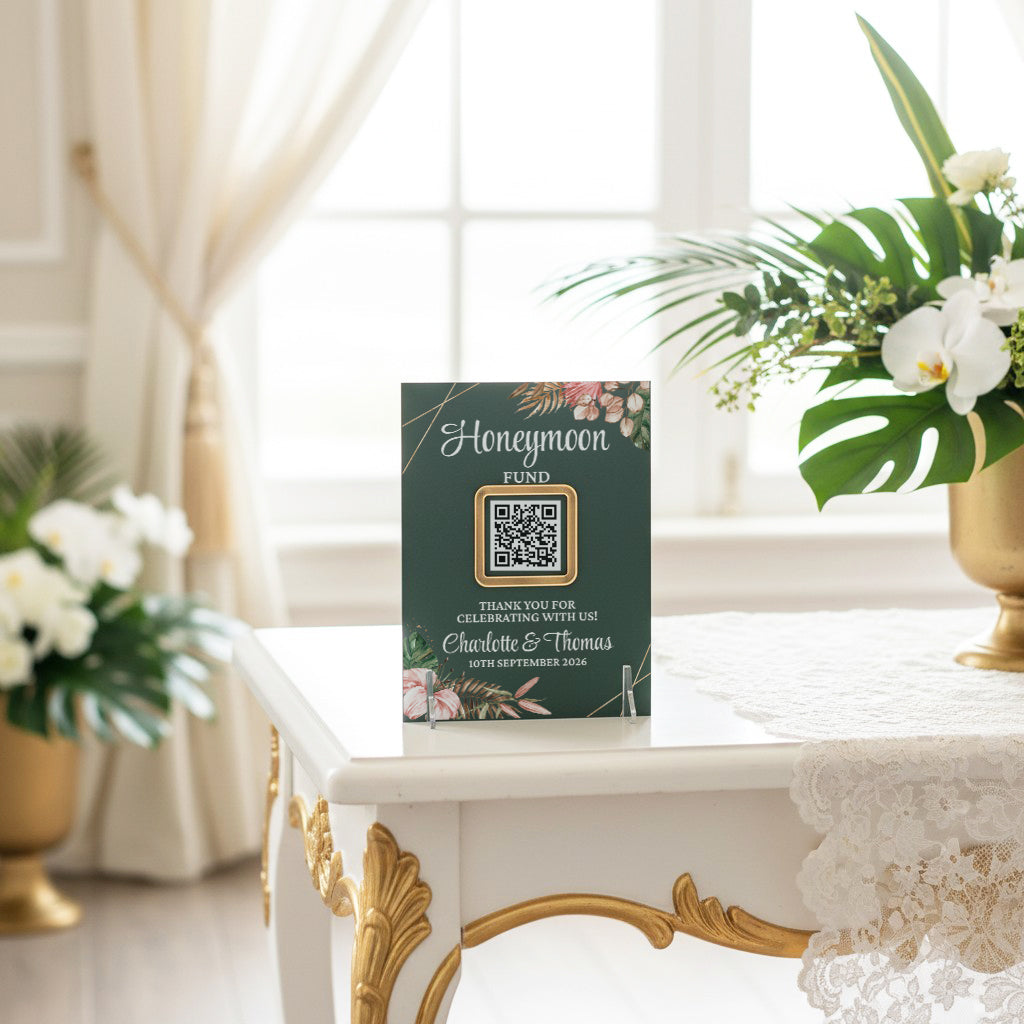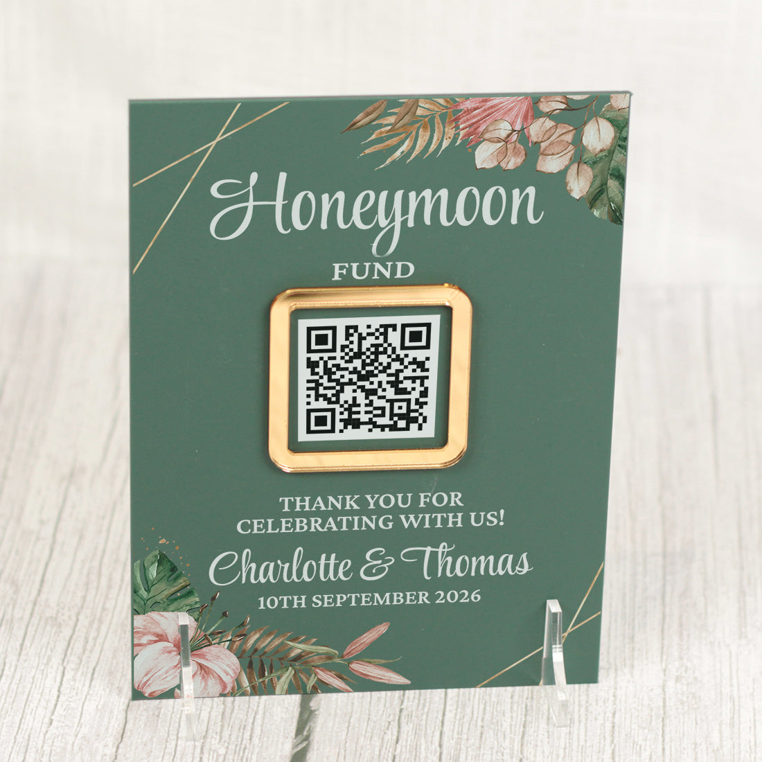 Tropical Boho Honeymoon Fund QR code acrylic sign