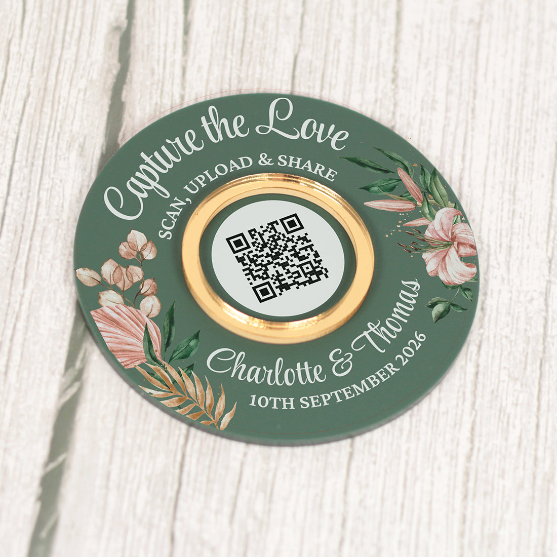 Tropical Boho Photo Upload Sharing QR Code Discs