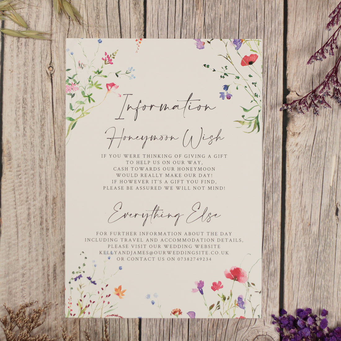 Also available to complete the set are optional guest information cards. The additional information cards are ideal if you need to advise your guests of any other important information, for example directions, accommodation or gift list details.